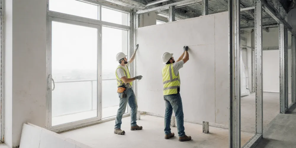 Se hai problemi di rumori – dal vicino, dalla strada, tra un piano e l’altro – le pareti fonoisolanti in cartongesso funzionano davvero bene. La chiave è fare una struttura doppia desolidarizzata (cioè che non trasmette le vibrazioni) e riempire tutta l’intercapedine con lana di roccia densa. Poi mettiamo lastre doppie su entrambi i lati per aumentare la massa: più è pesante, meno passa il suono. Per i controsoffitti acustici usiamo pannelli specifici fonoassorbenti e lastre forate che “catturano” i rumori. Questo tipo di soluzione riduce sia i rumori aerei (voci, TV, musica) che il calpestio dei passi. Lo facciamo spesso in case, studi medici o legali, sale riunioni, locali pubblici dove serve privacy.